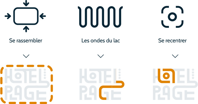 Un logo d hôtel pensé comme un signe compact, chaleureux et fédérateur. Les lettres s’assemblent en un bloc uni, presque comme une petite architecture, pour traduire l’idée d’un lieu où la famille et les amis se retrouvent, proches les uns des autres. Les courbes viennent adoucir l’ensemble et apportent du mouvement. Elles évoquent à la fois la fluidité de l’eau, la promenade au bord du lac et un esprit ludique, accueillant et vivant.